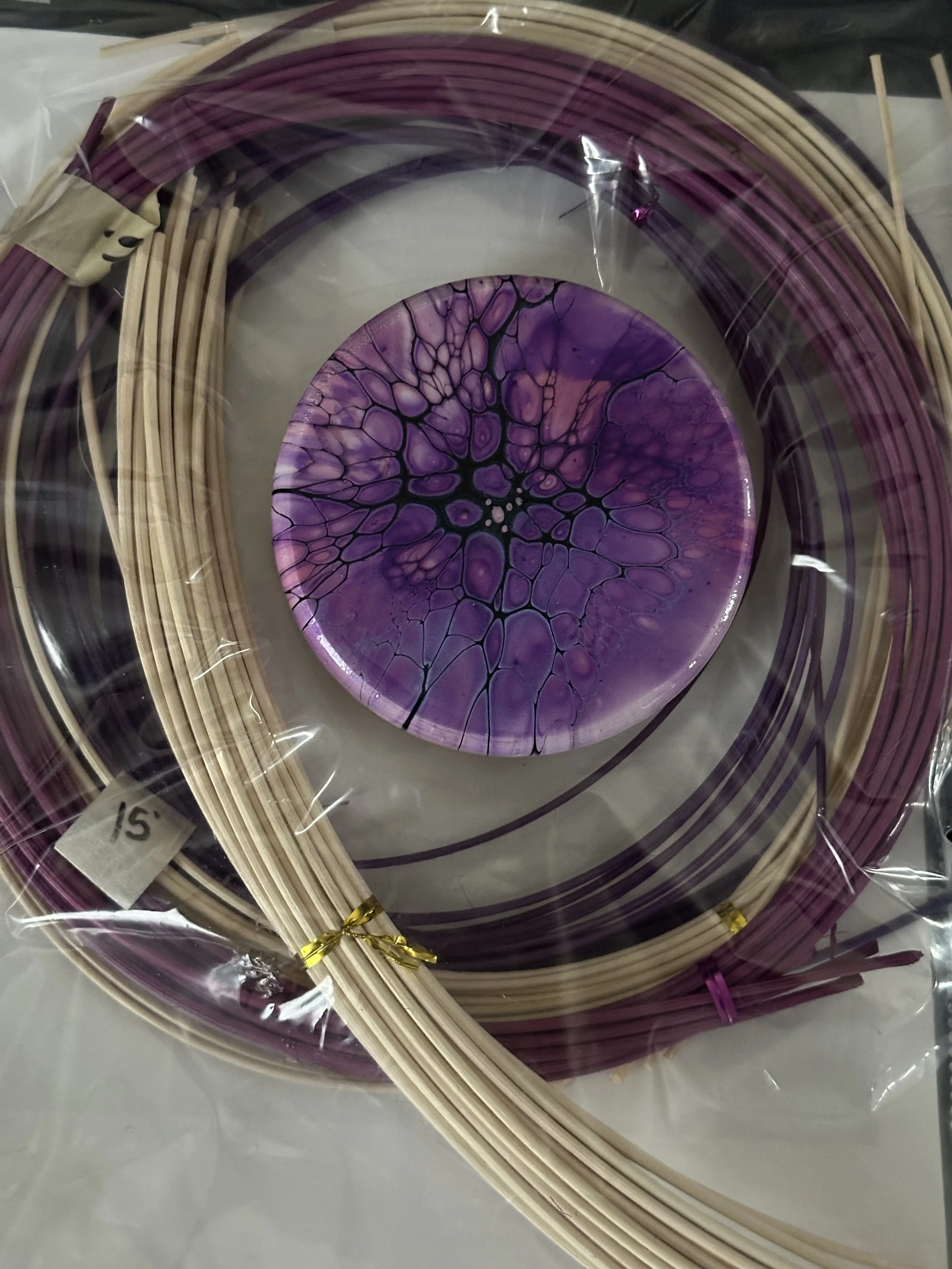 The kit include one Sullivan pattern (5 pages, 21 photos), one 4” acrylic bloom base, one 27 spoke template and plenty of color coordinated round reed to weave this stunning basket. The solid hardwood base has been painted in the SheleeArt Bloom style and coated with 1-2 coats of epoxy for lasting beauty. Please be aware that this is an beginner kit and the weaver will find 3 pages of Common Techniques enclosed to either refresh or enhance their skill set.