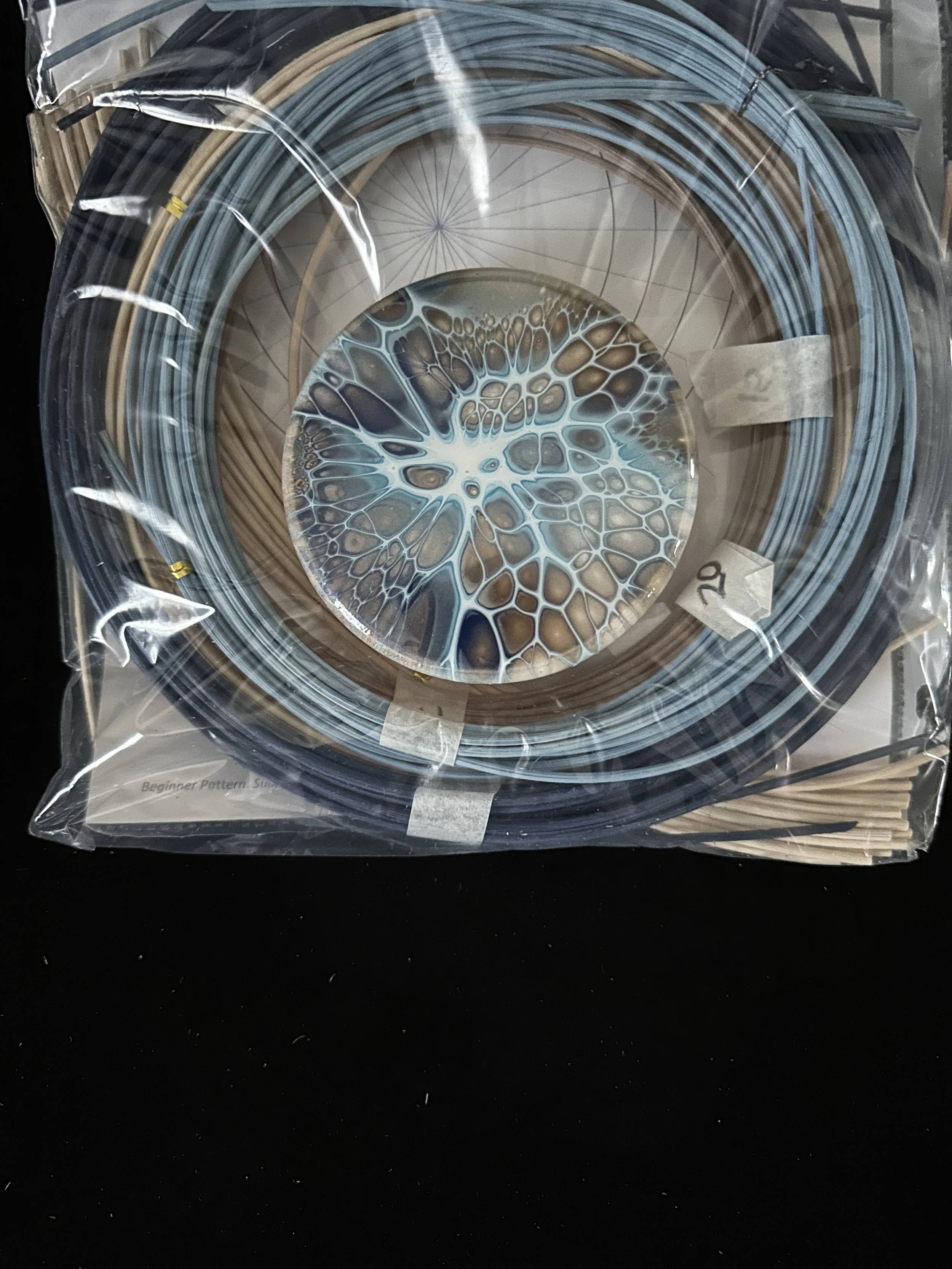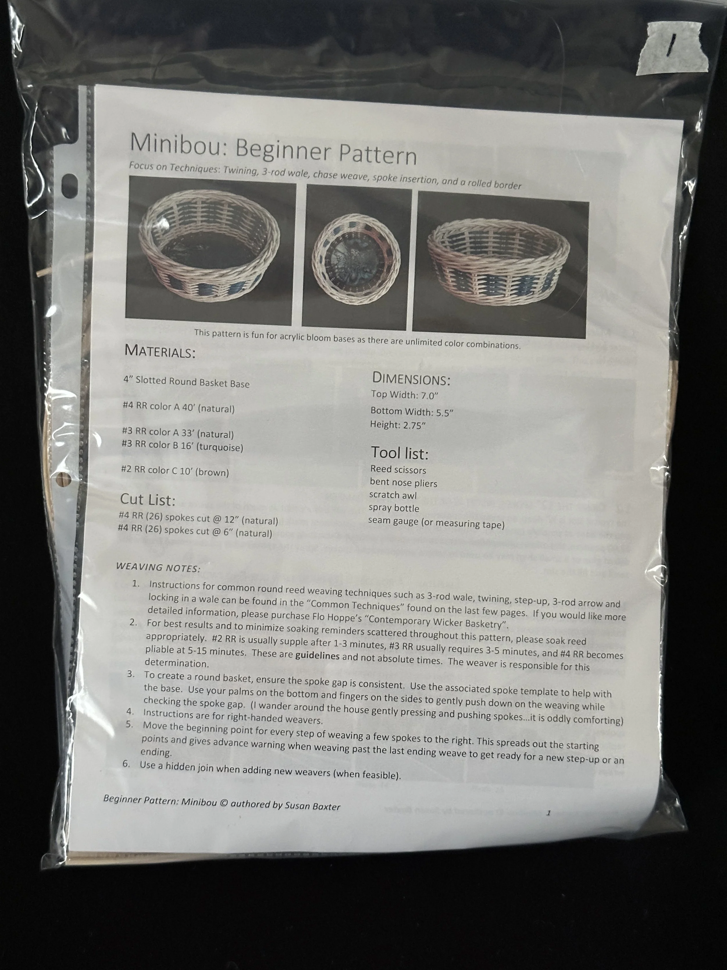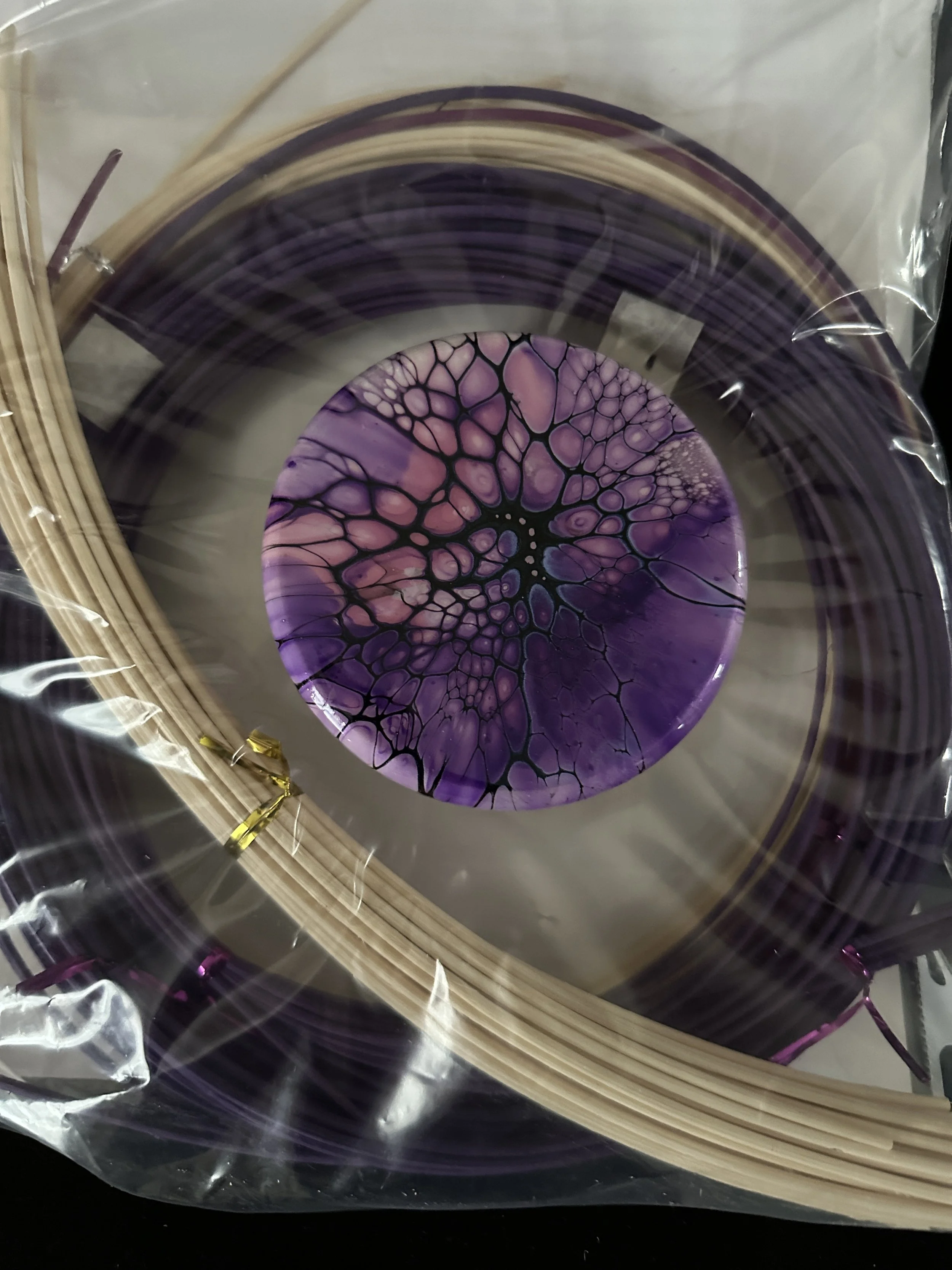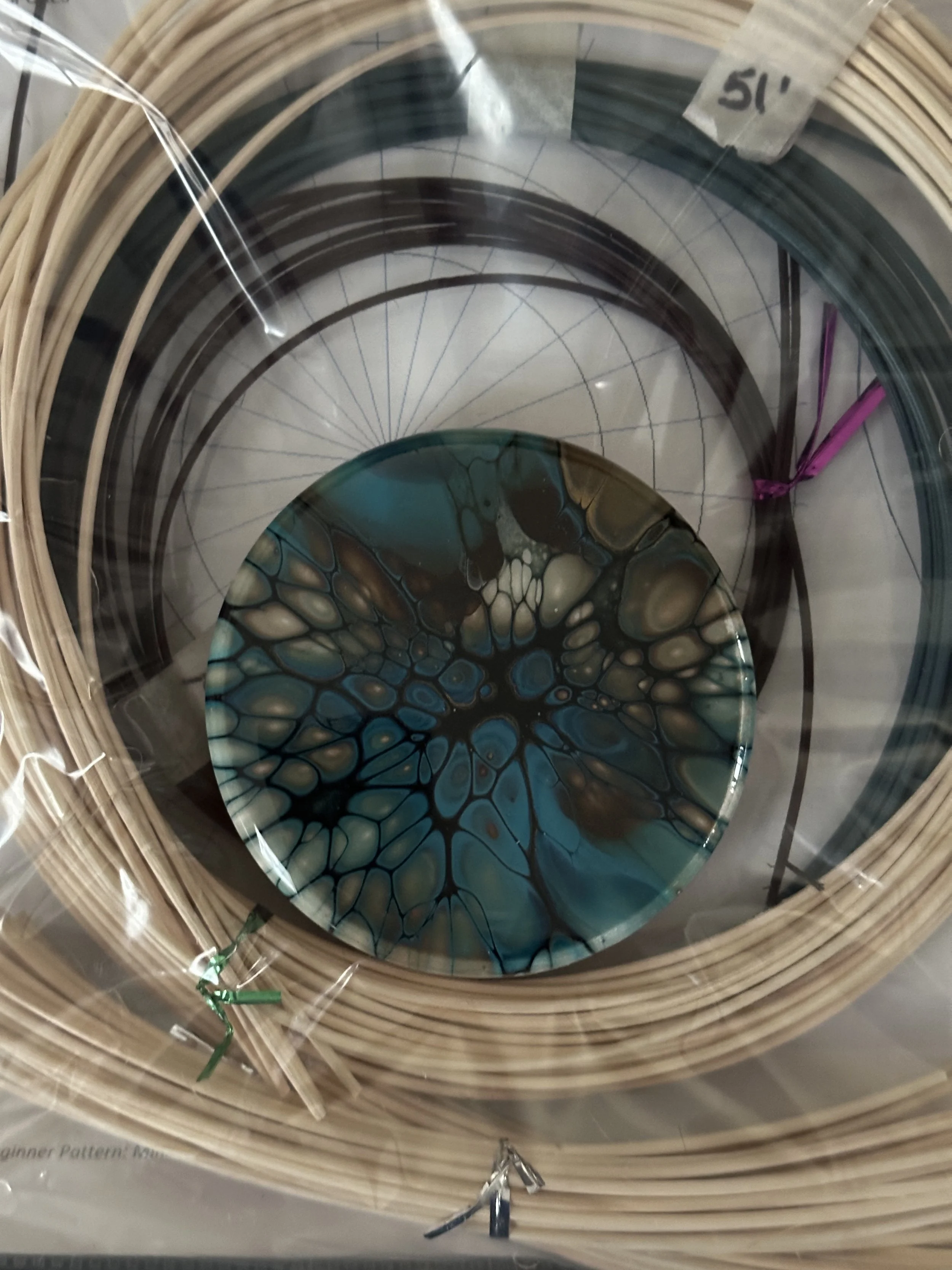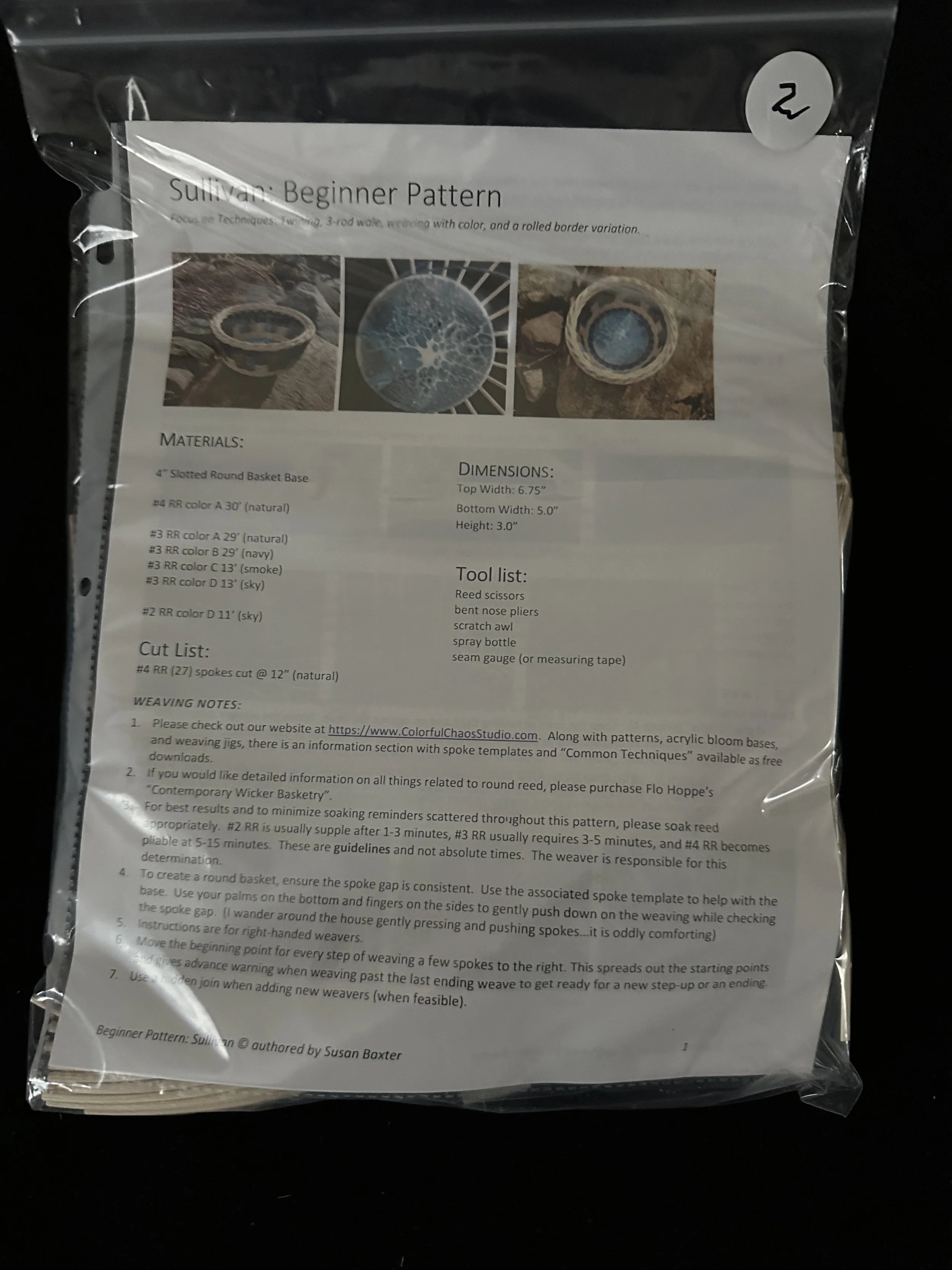 The kit include one Sullivan pattern (5 pages, 21 photos), one 4” acrylic bloom base, one 27 spoke template and plenty of color coordinated round reed to weave this stunning basket. The solid hardwood base has been painted in the SheleeArt Bloom style and coated with 1-2 coats of epoxy for lasting beauty. Please be aware that this is an beginner kit and the weaver will find 3 pages of Common Techniques enclosed to either refresh or enhance their skill set.