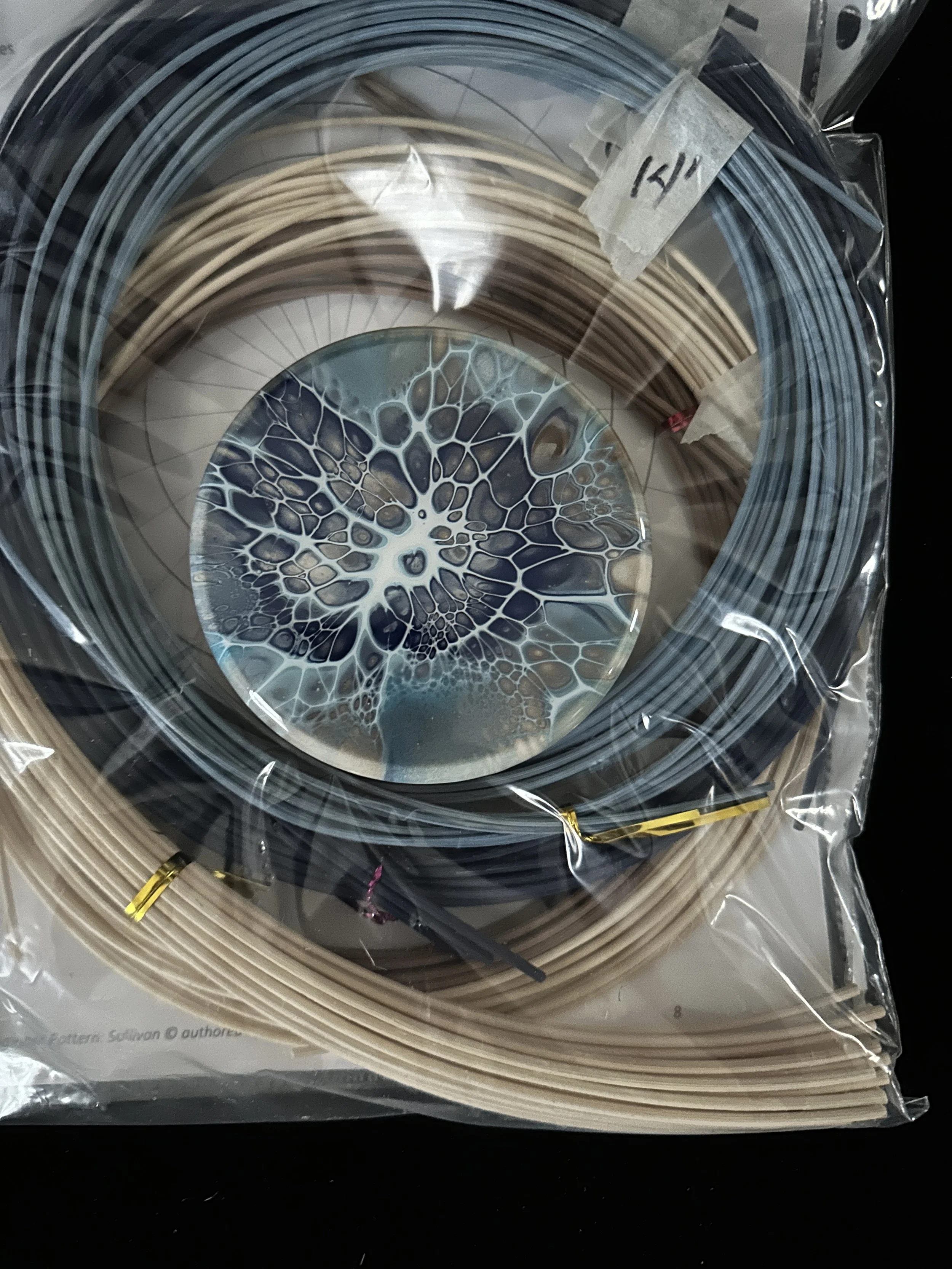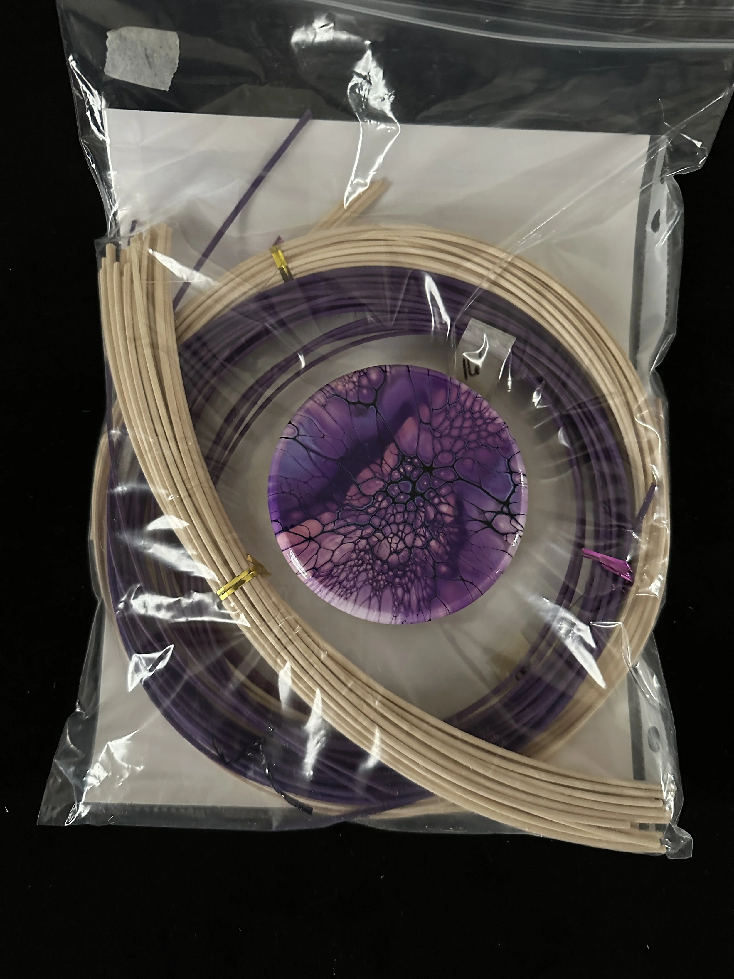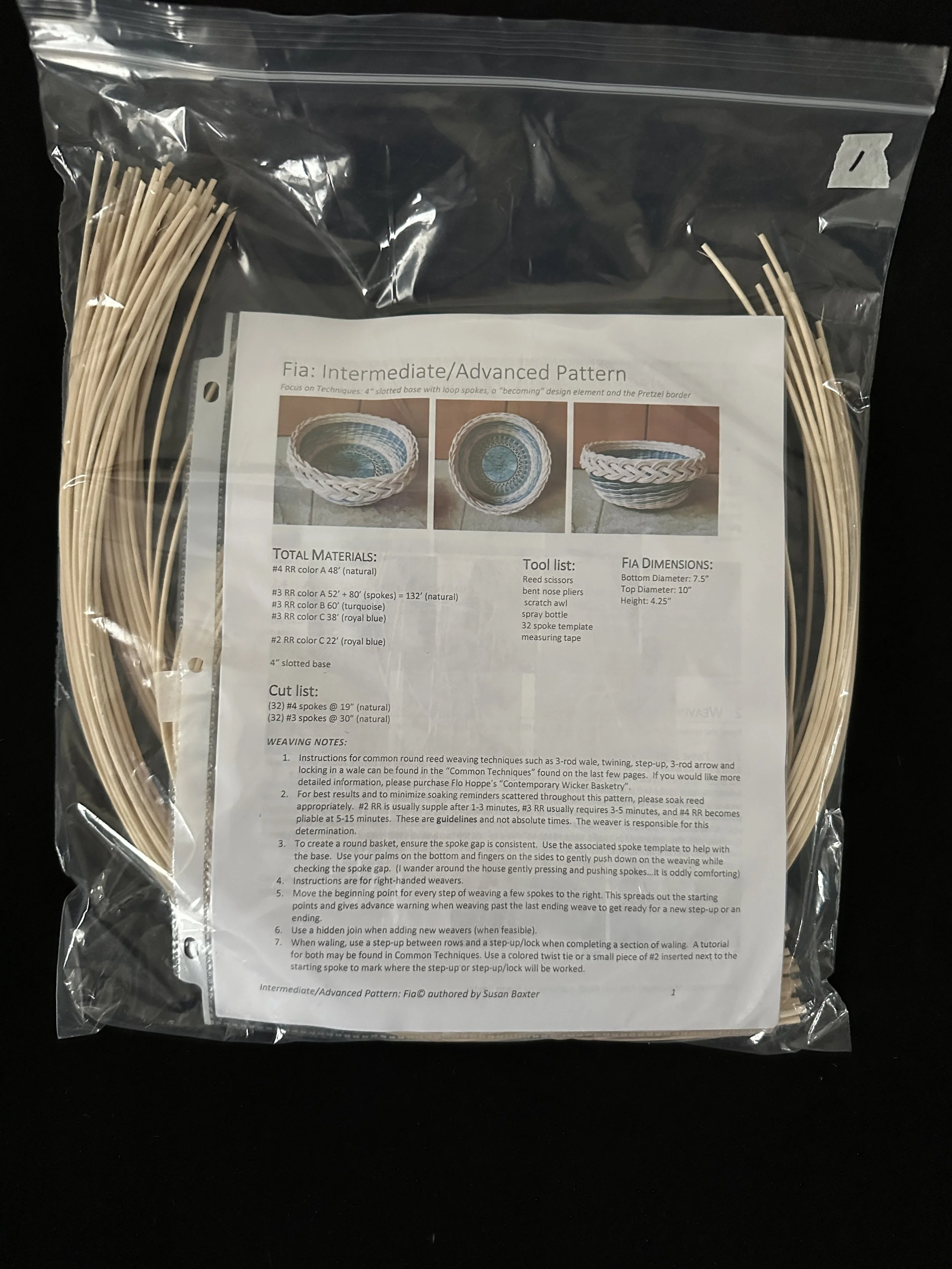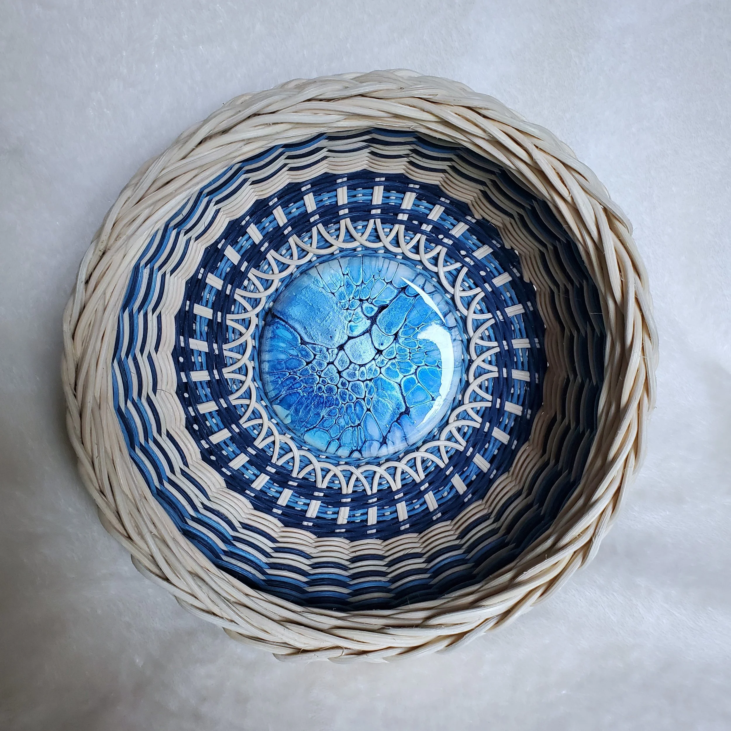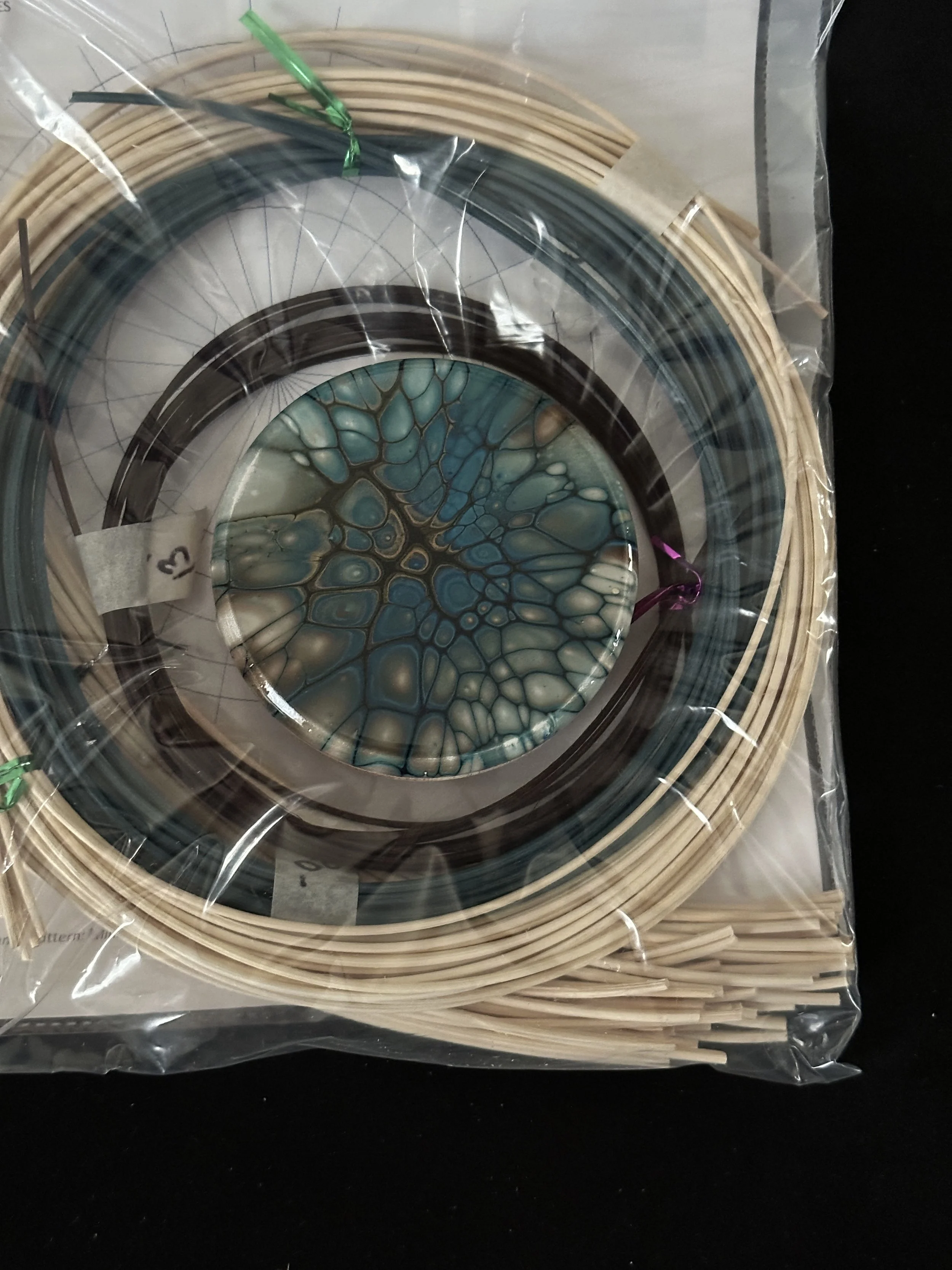 The kit include one Minibou pattern (5 pages, 28 photos), one 4” acrylic bloom base, one 26 spoke template and plenty of color coordinated round reed to weave this stunning basket. The solid hardwood base has been painted in the SheleeArt Bloom style and coated with 1-2 coats of epoxy for lasting beauty. Please be aware that this is an beginner kit and the weaver will find 3 pages of Common Techniques enclosed to either refresh or enhance their skill set.
